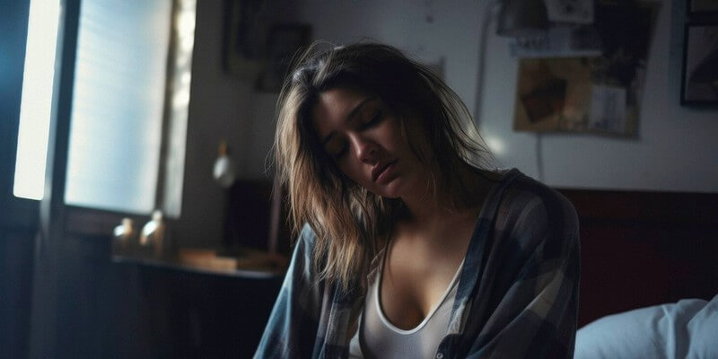 Femme inquiète sur son lit